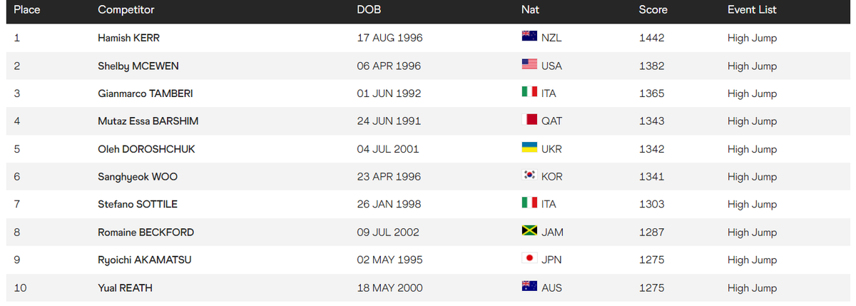 Джанмарко Тамбери и Мутаз Баршим, которые разделили золото на прошлой Олимпиаде, по итогам 2024 года заняли третье и четвертое места соответственно. К слову, именно итальянец показал лучший результат года, прыгнув на 2 метра 37 сантиметров – это произошло 11 июня в Риме.