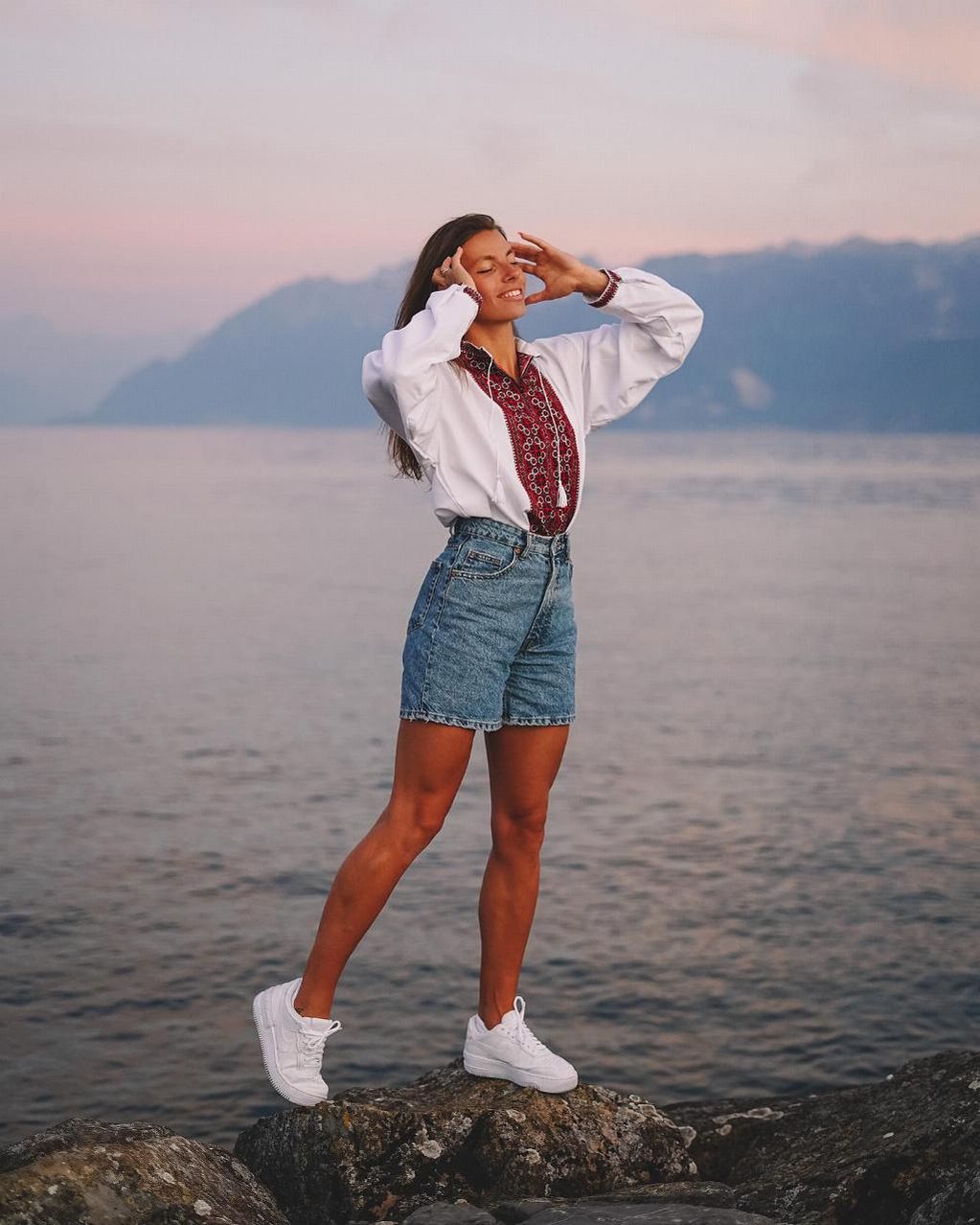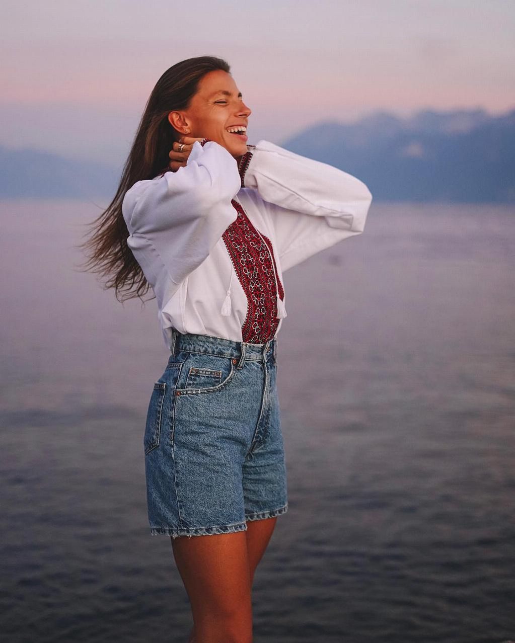 Украинка поделилась патриотическими фотографиями из Швейцарии. Бех-Романчук надела вышиванку и сделала несколько невероятных кадров у Женевского озера в Лозанне.