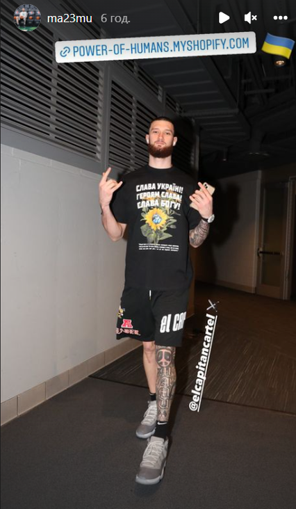 На первый матч плей-офф против Чикаго Сандро приехал в футболке с надписями "Слава Украине. Героям слава. Слава богу" и изображением подсолнечника.