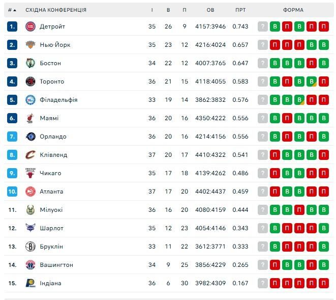 Кливленд – Детройт – 110:114 (28:19, 28:47, 26:21, 28:27)