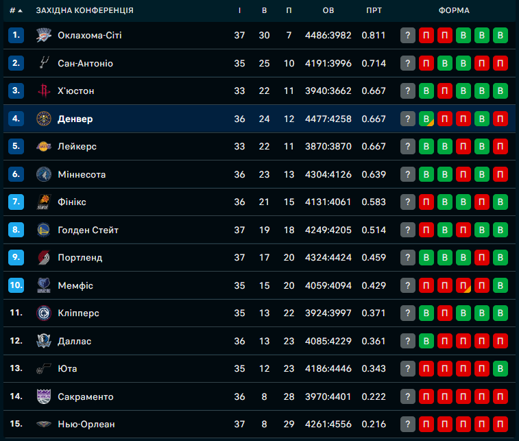 Денвер без Йокича в овертайме дожал Филадельфию (125:124). Джоэл Эмбиид набрал 32 очка и добавил 10 подборов, но этого оказалось мало. Денвер смог перевести игру в овертайм и одержал непростую победу, которая оставила Наггетс в топ-4 Запада.