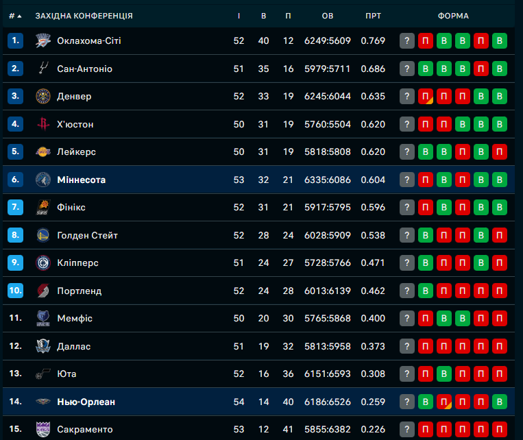 Миннесота – Нью-Орлеан – 115:119 (32:34, 38:22, 24:33, 21:30)