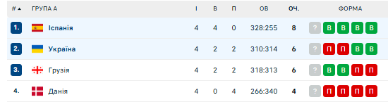 Неудача опустила Украину на третью позицию в турнирной таблице, которая позволяет пройти дальше. Впереди два решающих матча: 2 июля против Грузии, а 5-го против Дании. Для выхода в финальный раунд квалификации украинцам хватит победы в одном из двух поединков.
