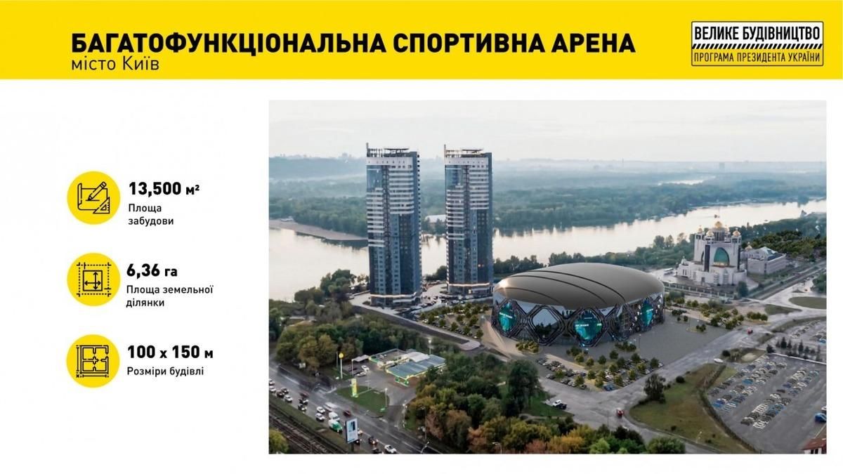 Было сообщено, что в Киеве проведут многофункциональную спортивную арену на левом берегу Днепра возле Международного выставочного центра. Она рассчитана на 15 880 зрителей. Ввод в эксплуатацию ожидается в конце 2024 года.