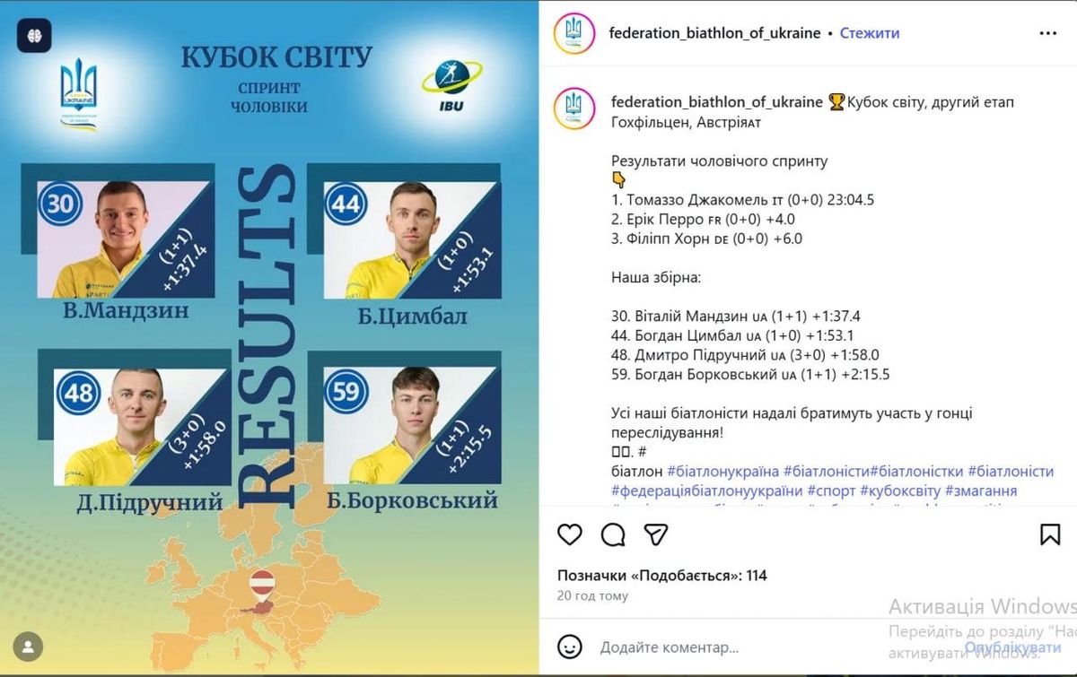 "Друзья, хотим прояснить ситуацию с графикой, которая была опубликована на наших ресурсах 12 декабря 2025 года с результатами мужского спринта. Мы использовали для создания графики редактор Canva, который содержит набор стандартных графических элементов, в частности локации городов и стран. В данном случае, был задан запрос на локацию Австрия, однако мы недостаточно внимательно просмотрели эту графику и не заметили, что на этой графике присутствует карта Украины без территории Автономной Республики Крым.