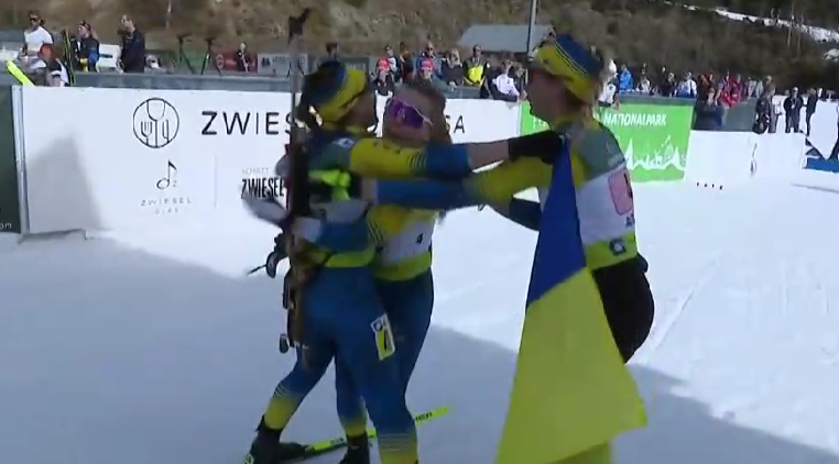Перед последним этапом украинская сборная шла на пятой позиции, имея солидное отставание от топ-3. Однако Хвостенко сумела показать невероятный результат и несмотря на два дополнительных патрона сумела финишировать на третьей позиции.
