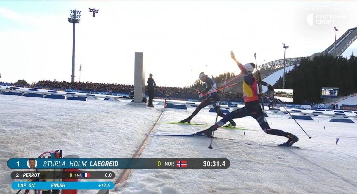 Победителя гонки определила драматическая заруба между Штурлой Легрейдом и Эриком Перро, которые одновременно пересекли финишную линию. Фотофиниш зафиксировал победу норвежского биатлониста.