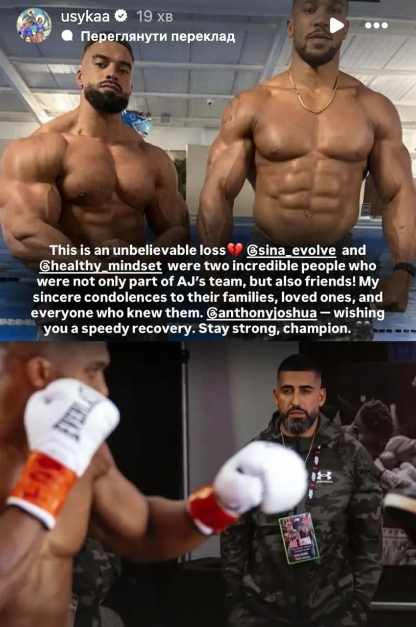 Мои искренние соболезнования их семьям, близким и всем, кто их знал. Энтони, желаю тебе скорейшего выздоровления. Держись, чемпион", – написал Усик у себя в Instagram.