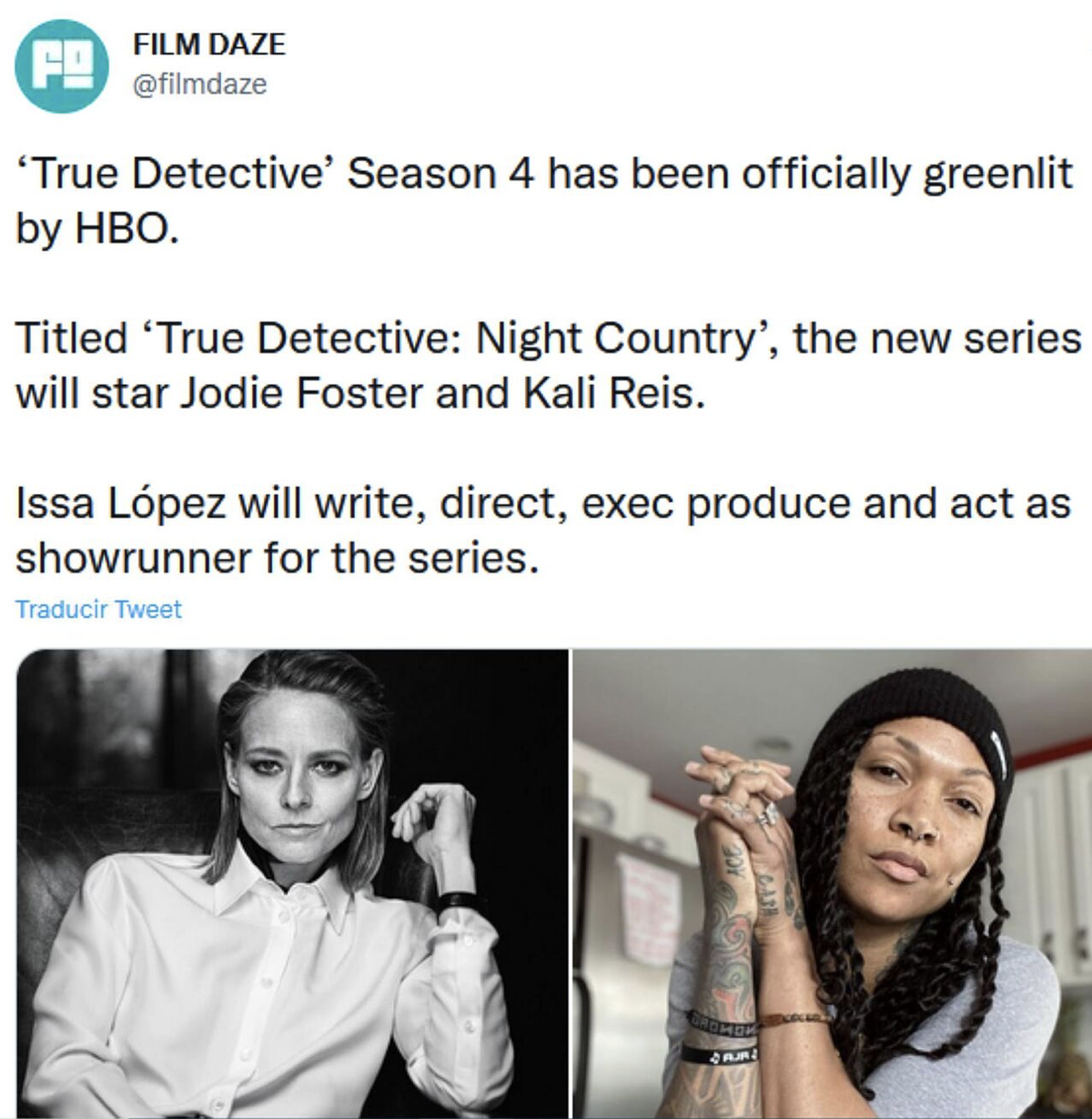 По информации источника, в четвертом сезоне Рейс сыграет с двукратной обладательницей Оскара из Голливуда – Джоди Фостер. Боксерша будет детективом по имени Эванджелина Наварро, а эта часть будет называться "Настоящий детектив: Ночная страна".