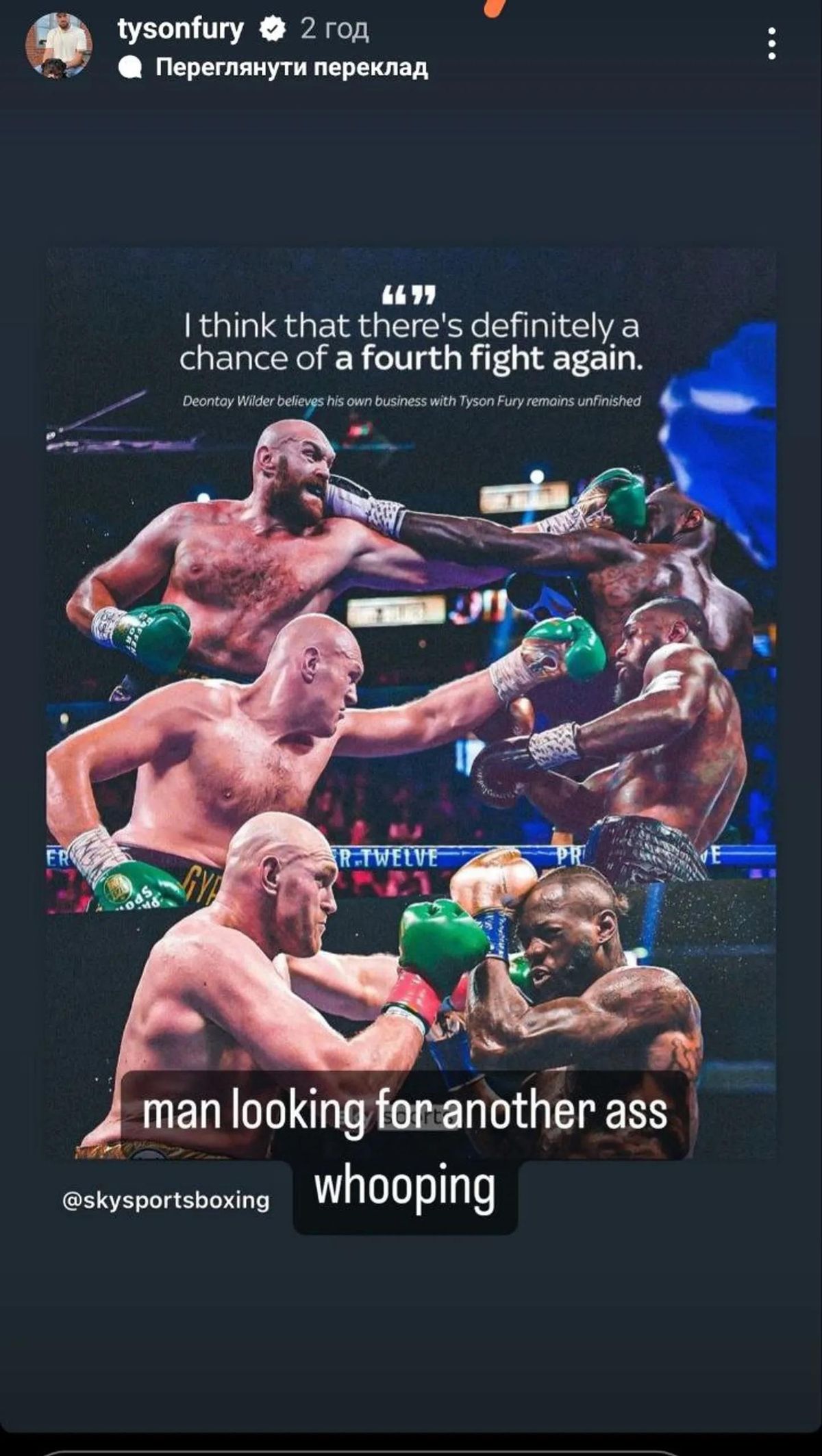 "Мужчина хочет, чтобы ему снова надрали задницу", – написал Тайсон в Instagram.