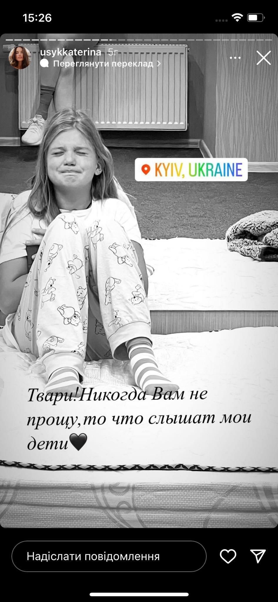 "Животные. Никогда вам не прощу то, что слышат мои дети", – подписала женщина фото, на которой ее дочь Елизавета вся в слезах.