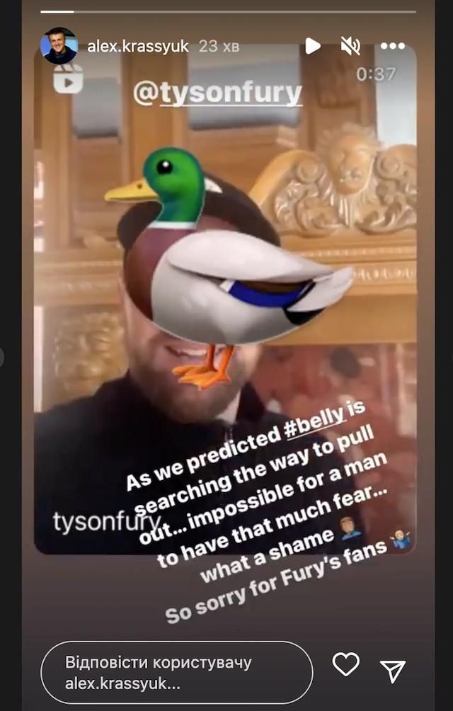 "Как мы и предполагали, Пузо ищет варианты, чтобы отказаться от боя. Невозможно, чтобы человек имел столько страха. Какой стыд. Стыдно перед его поклонниками", – написал Красюк в Instagram.