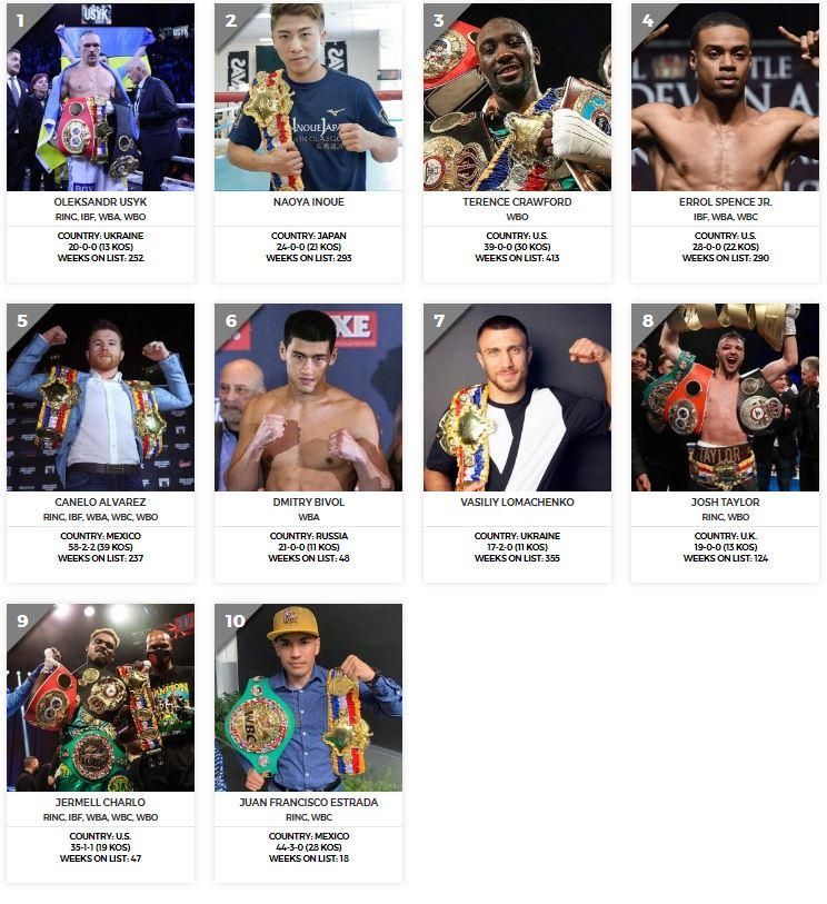 Культовый журнал The Ring обновил рейтинги боксеров всех весовых категорий и символический топ-10 вне весовой категории (Р4Р) на своем официальном сайте.
