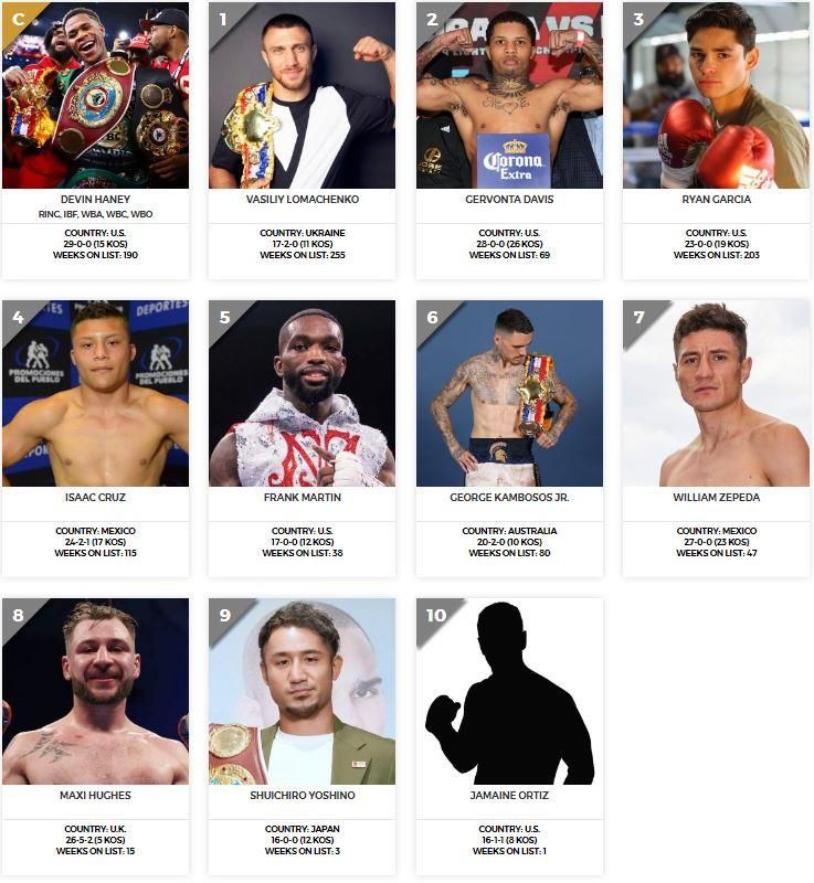 Василий Ломаченко занимает 7 строчку в списке лучших боксеров мира вне весовой категории и 1 место в легком весе. Несмотря на то, что Дэвин Хейни владеет поясом The Ring в 135-фунтовом дивизионе, в десятку P4P он не попал.