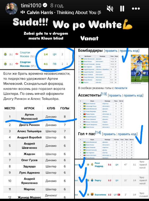 Милевский не оценил попытку Владислава и жестко ответил. "Ванат рановато шутит. Клоун, б*я. Сюда смотри. Очки хоть наберите, позорище", – написал Милевский на своей странице в Instagram, вспомнив о своих самых известных голах в составе Динамо.
