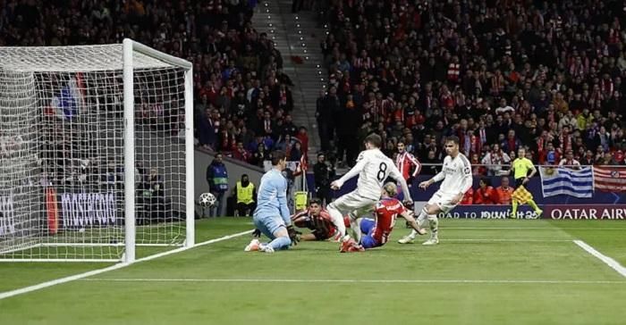 Атлетико хватило 27 секунд, чтобы нивелировать отставание с Сантьяго Бернабеу. Де Пауль сместился на фланг и прострелил в штрафную площадь. Джулиано Симеоне пяткой не попал по мячу, но Асенсио сам удобно подправил Галлахеру. Воспитанник Челси с 2 метров протолкнул мимо Куртуа и стал автором самого быстрого гола в ЛЧ среди англичан.