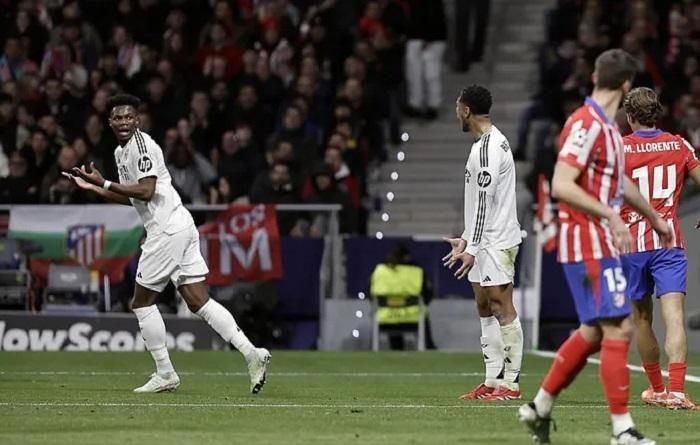 Камеры зафиксировали два показательных неигровых момента. Чуамени залез под Беллингема и испортил перспективную скидку. Раздраженный Джуд выругался на партнера. Атлетико же на эмоциональном подъеме. Диего Симеоне даже банальный угловой праздновал так, как будто его команда уже вышла в финал. 1:0 в пользу "матрасников" до перерыва.