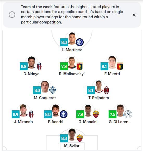 А за считанные секунды до перерыва украинец разрезал оборону соперников и снова вывел Миретти на свидание с вратарем. За свою результативную игру Малиновский получил от статистического портала SofaScore оценку 7,9, что позволило ему войти в символическую сборную тура Серии А. Также туда попал и сам Миретти, у которого дубль голов.