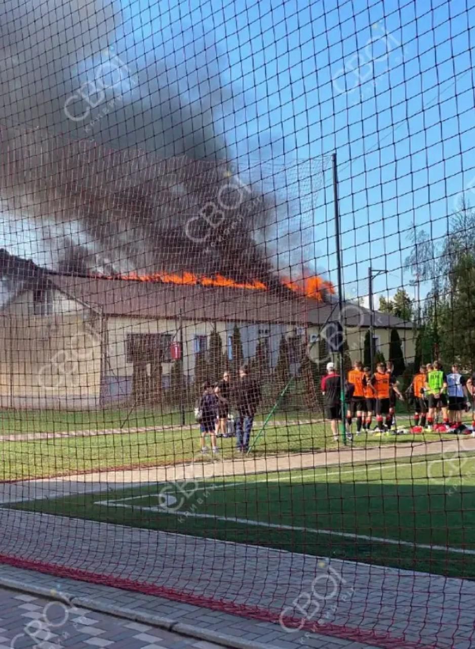 Тренировочная база ФК Кривбасс пылает в результате пожара.