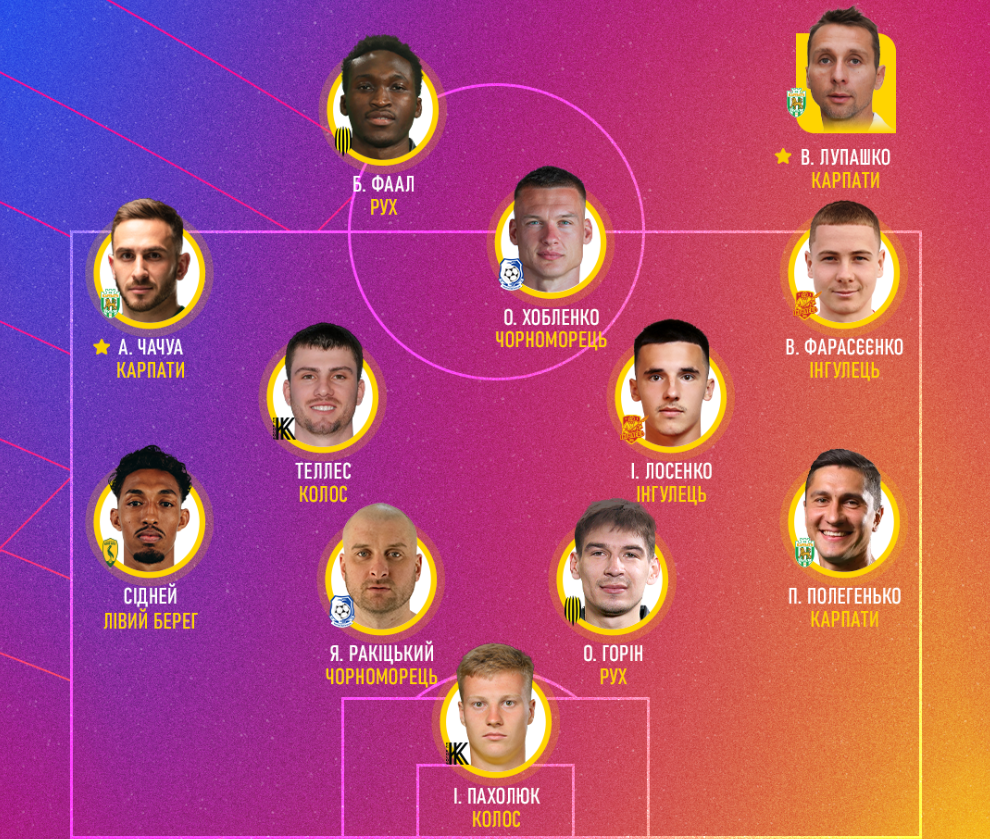 Игроком тура стал также представитель львовского коллектива. Амбросий Чачуа, сначала заработал на себе пенальти, а затем вырвал победу для Карпат на пятой компенсированной минуте встречи.