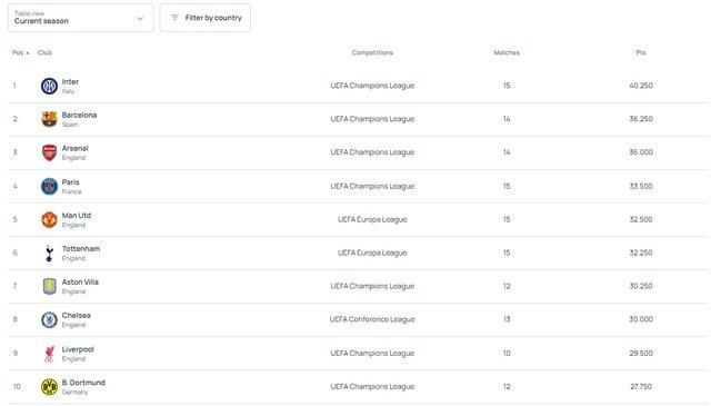 По набранным баллам в текущем сезоне ПСЖ также не на первой позиции. В этом рейтинге подопечных Луиса Энрике опередили Интер, Барселона и Арсенал.