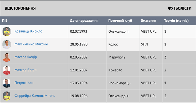 Дисциплинарный комитет украинской Премьер-лиги принял дисциплинарные санкции в отношении нескольких игроков за нарушения во время матчей чемпионата. Среди них оказался и Мигель Кампуш из Александрии.