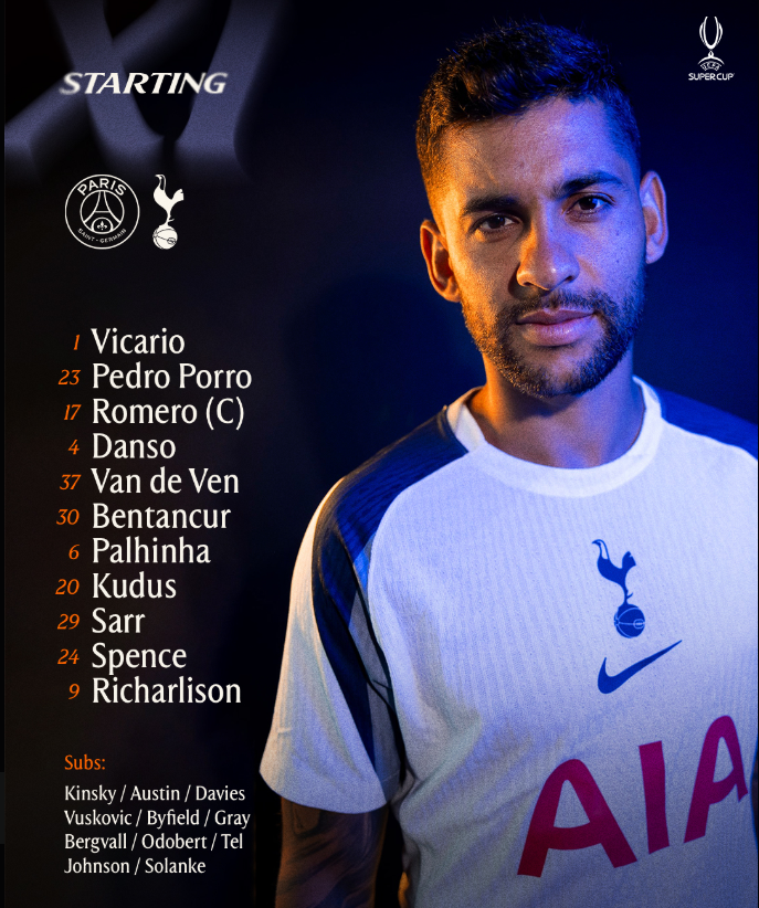 Тоттенхэм: Викарио – Порро, Ромеро, Дансо, Ван де Вен – Бентанкур, Палинья – Кудус, Сарр, Спенс – Ришарлисон