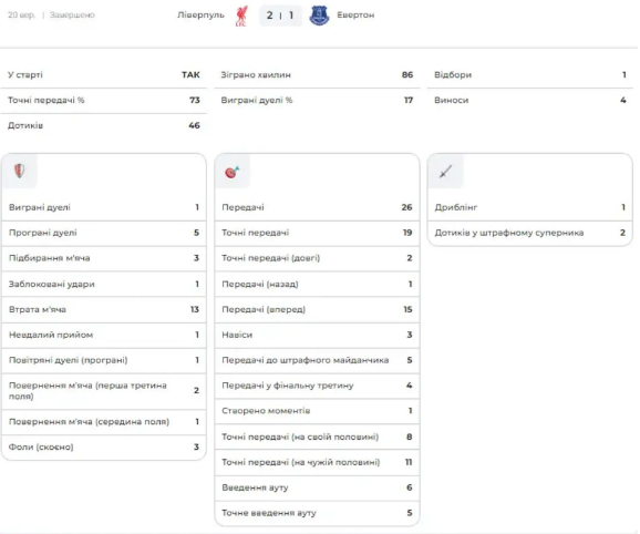 Украинский защитник Эвертона Виталий Миколенко вышел на поле в матче против Ливерпуля в стартовом составе и отыграл 86 минут. 26-летний защитник в этом матче редко присоединялся к атакам, сконцентрировавшись преимущественно на том, чтобы сдержать Салаха.