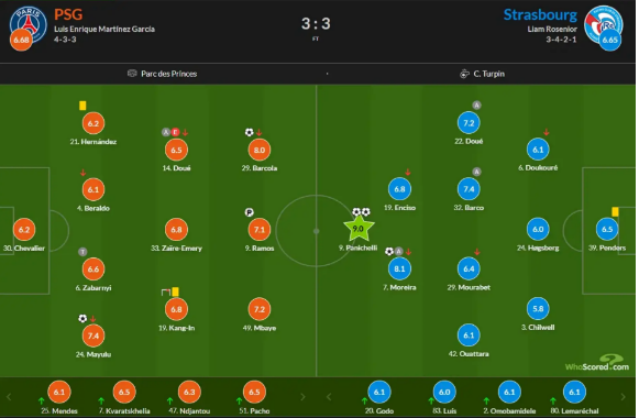 ПСЖ провел поединок 8 тура Лиги 1 против Страсбура, который завершился со счетом 3:3. Украинский центральный защитник парижан Илья Забарный вышел на поле со стартовых минут встречи и отыграл полный матч.