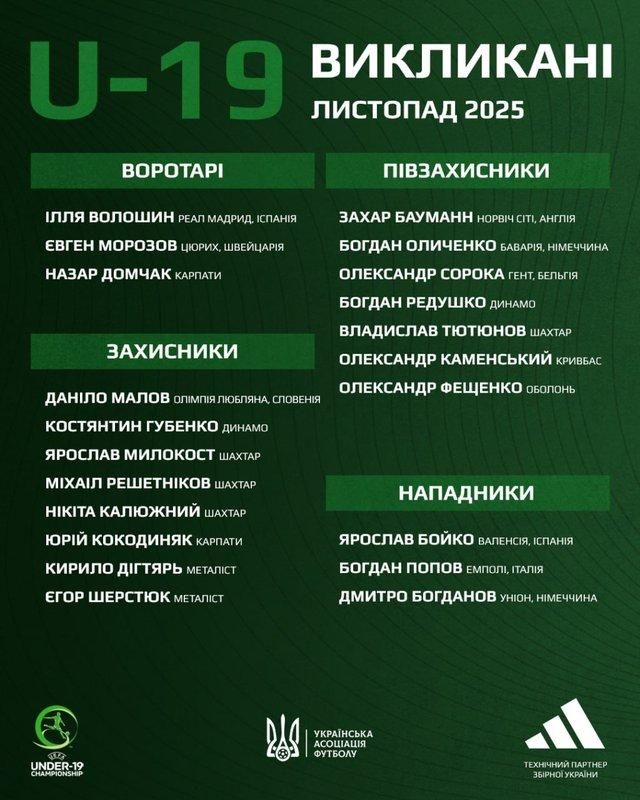 Защитники: Юрий Кокодиняк (Карпаты), Кирилл Дегтярь, Егор Шерстюк (оба – Металлист), Ярослав Милокост, Михаил Решетников, Никита Калюжный (все – Шахтер), Даниил Малов (Олимпия Любляна), Константин Губенко (Динамо).