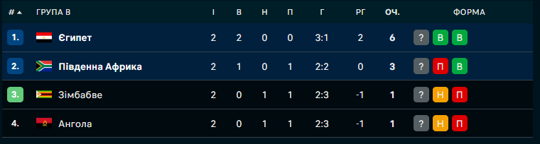 Победа 1:0 позволила Египту с 6 баллами возглавить группу и оформить путевку в 1/8 финала КАН. ЮАР имеет в активе 3 балла и имеет неплохие шансы выйти из группы со второго места.