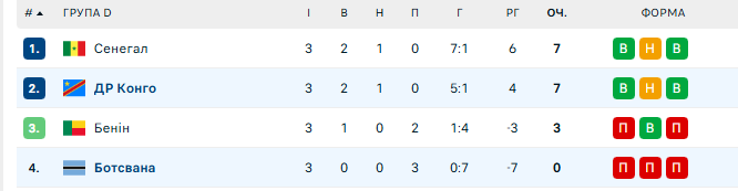 В параллельном матче ДР Конго разгромила Ботсвану со счетом 3:0. Героем поединка стал 34-летний Гаэль Какута. Воспитанник Челси отдал ассист и оформил дубль. Даже такая яркая победа не помогла "леопардам" выиграть у Сенегала разницу голов, чтобы получить лидерство.