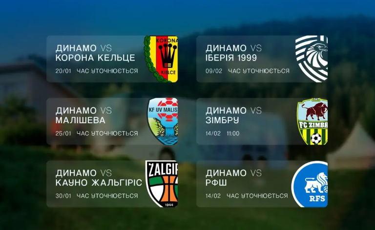 14 февраля сбор завершится сразу двумя с Зимбру и РФШ. Впрочем, расписание может меняться – Динамо сообщит об этом на своих официальных ресурсах.