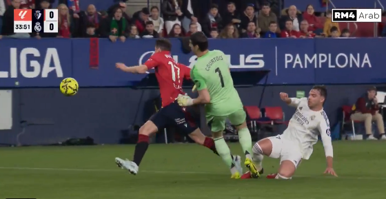 За несколько минут Осасуна создала кучу моментов. Сначала мадридцев спас Тибо Куртуа, совершив сумасшедший сейв после удара в упор.
