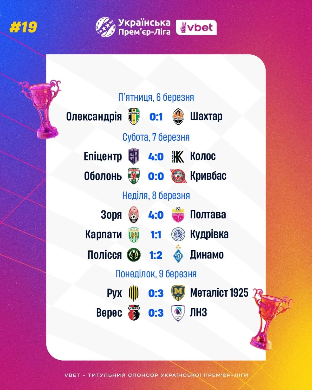 Важные очки оформил Эпицентр, который сенсационно разбил Колос 4:0. Карпаты продолжают проваливаться, сыграв вничью с Кудривкой. Потерял зачетные баллы Кривбасс, который разошелся миром с Оболонью.