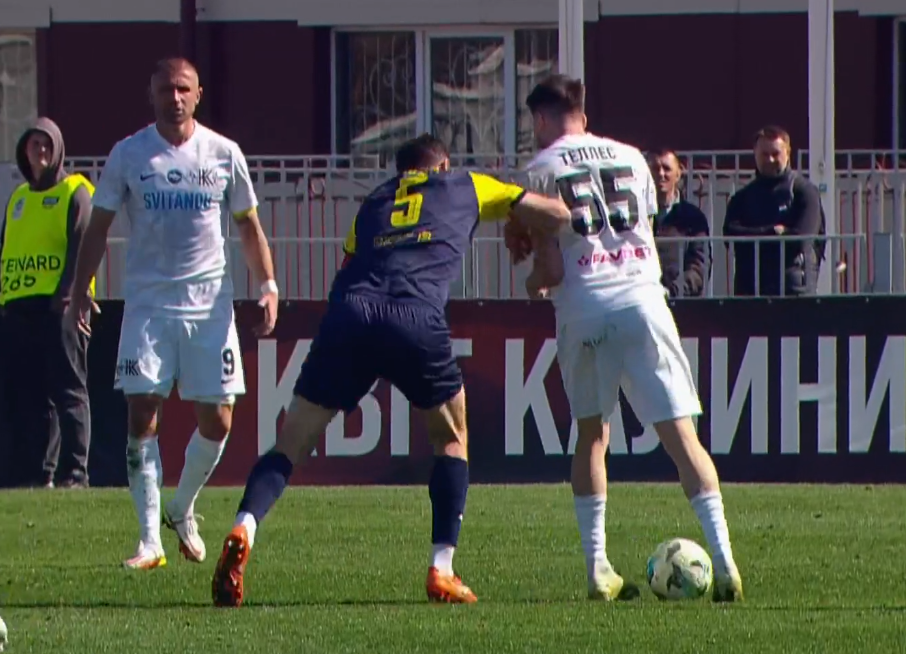 Капитан харьковчан после потери мяча завелся и толкнул Элиаса и заработал вторую желтую, которая стала красной. Это не понравилось Цурикову, который хотел выяснить отношения с Иваном.