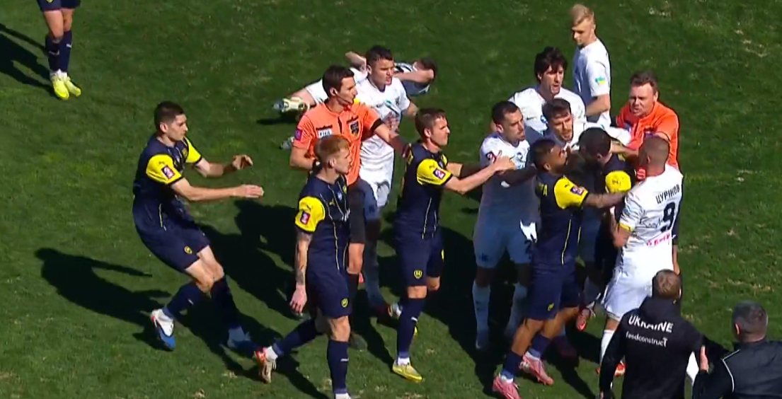 Под занавес встречи команды еще и решили устроить драку, которую запустил Калюжный.