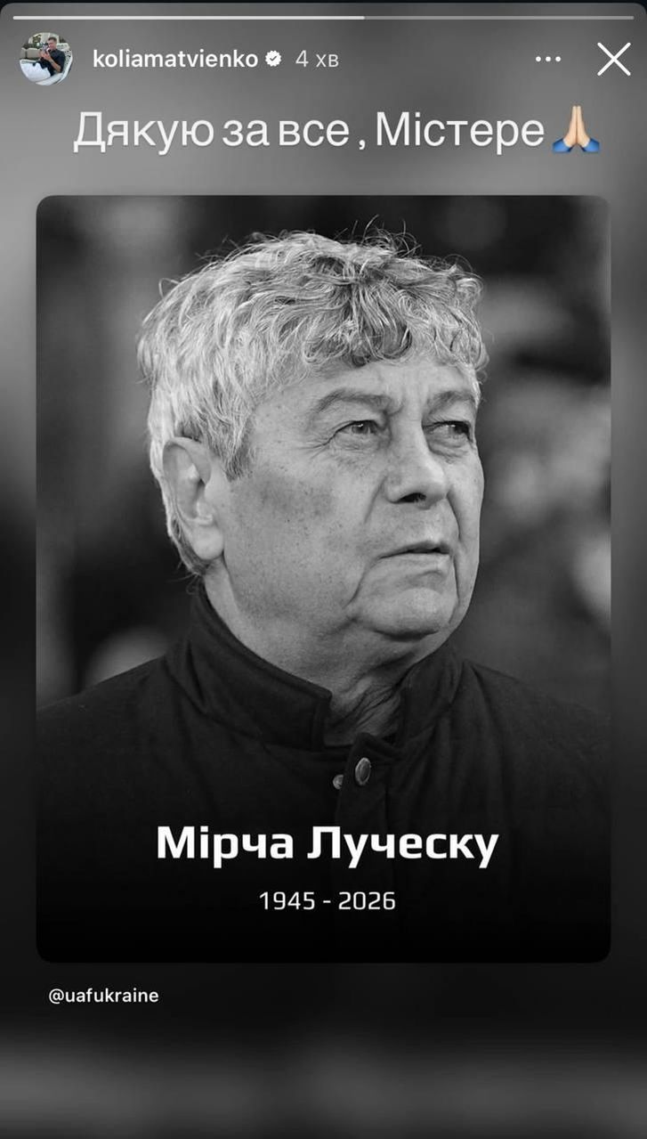 Защитник донецкого Шахтера и сборной Украины репостнул сообщение УАФ о смерти Луческу и поблагодарил бывшего тренера “горняков” за все.