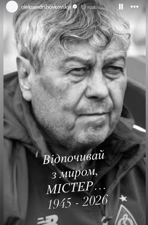 "Отдыхай с миром, мистер... 1945-2026", – написал Шовковский в своем Instagram, прикрепив фотографию Мирчи Луческу.