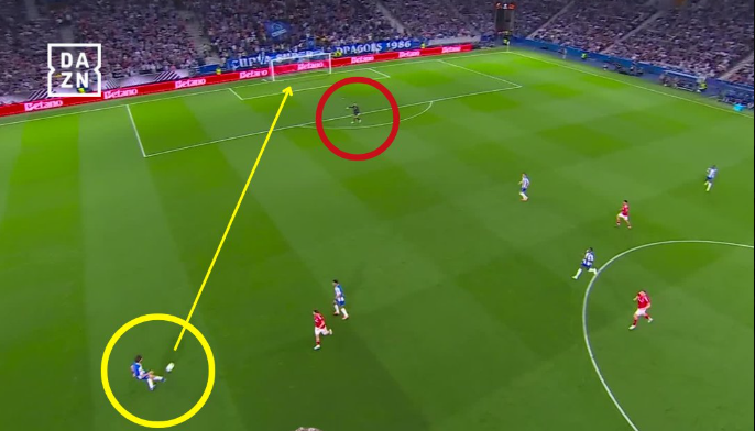 20-летний Мартим Фернандеш пытался отпасовать на голкипера, но не увидел, что тот отошел в сторону, и умудрился почти с центра поля закатить в собственные ворота.