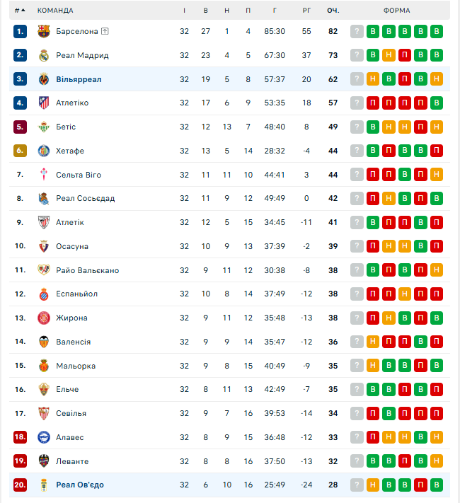 Другая команда со дна – Реал Овьедо – сенсационно отобрал очки у Вильяреала, который занимает третью строчку. Худшая команда Ла Лиги пропустила первой, но сумела вырвать ничью в середине второго тайма.