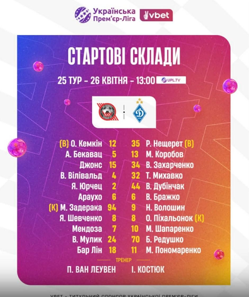 Поединок состоится сегодня, 26 апреля. Стартовый свисток прозвучит в 13:00 по киевскому времени. Игру рассудит бригада арбитров во главе с Александром Шандором.