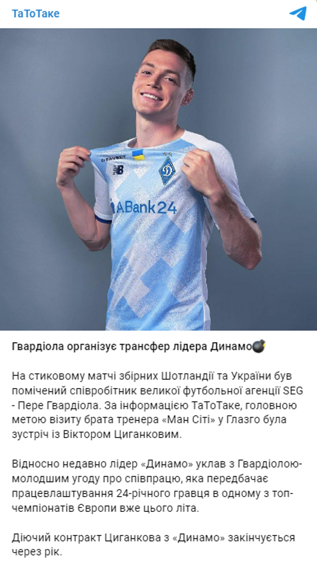 Напомним, что контракт украинского полузащитника с Динамо действует до 30 июня 2023 года, а Transmarkt оценивает Цыганкова в 25 млн евро.