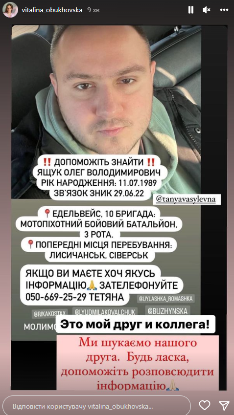 В последний раз Олег выходил на связь еще 29 июня, рассказывают его коллеги. Ящук воевал в составе 3-й роты 10-й бригады мотопехотного боевого батальона. Подразделение Олега в последнее время вело бои с оккупантами вблизи Северска и Лисичанска.