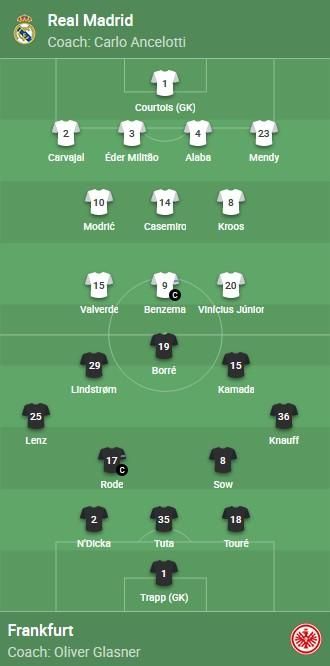 Стартовый состав Реала: Куртуа, Карвахаль, Милитао, Алаба, Менди, Модрич, Каземиро, Кросс, Вальверде, Бензема, Винисиус