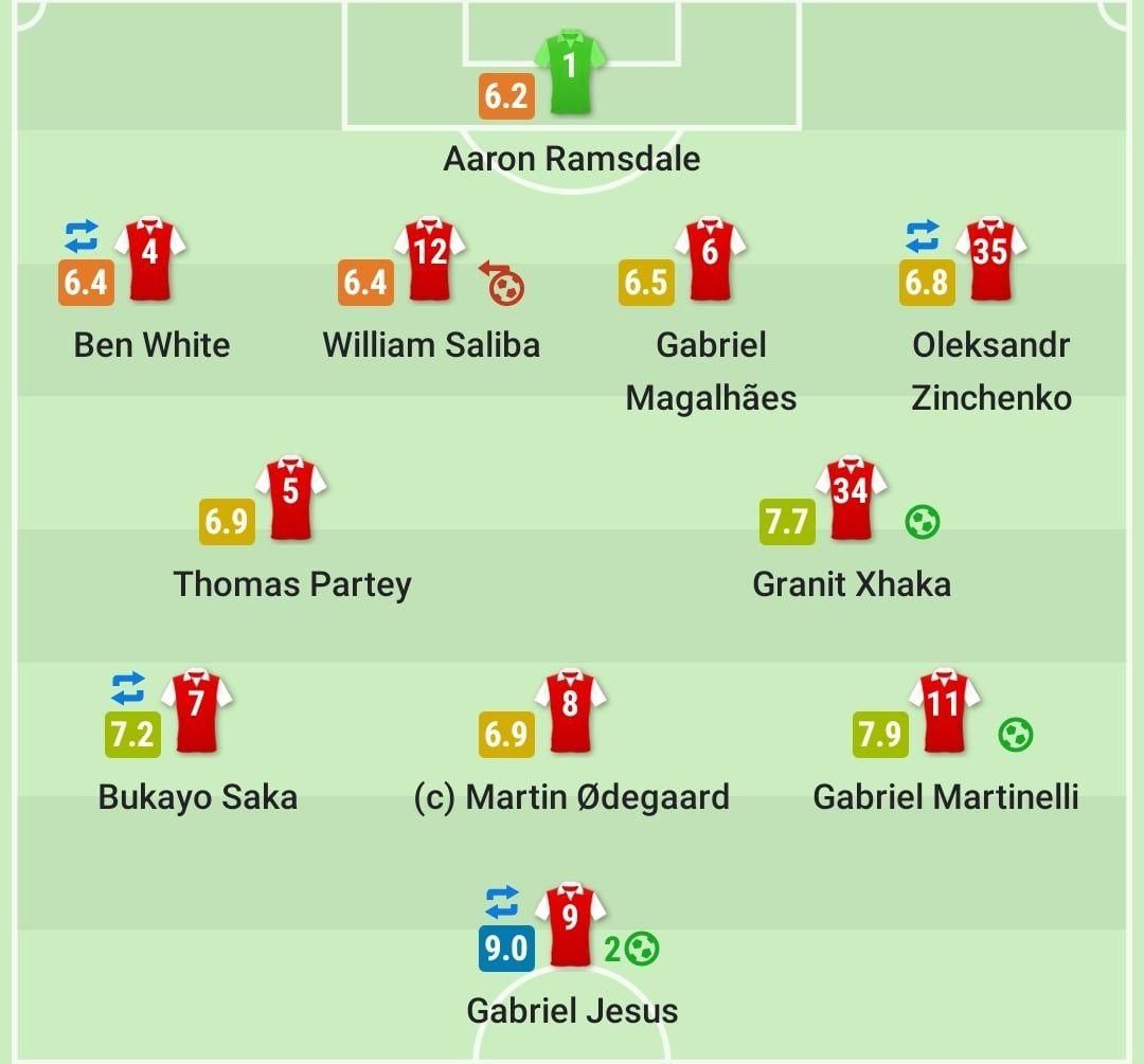 От SofaScore игрок сборной Украины получил 6,8 балла, а от WhoScored – 6,7. Это самые высокие баллы среди защитников "канониров". Средний балл всей команды – 6,96 и 6,81 от двух ресурсов. Лучшим был признан Габриэл Жезус, отличившийся двумя голами и столькими ассистами.