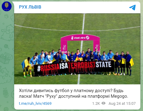 Коллектив отреагировал на это сообщением в своем Telegram-канале: "Хотели смотреть футбол в платном доступе? Пожалуйста! Матч Руха доступен на платформе Megogo".
