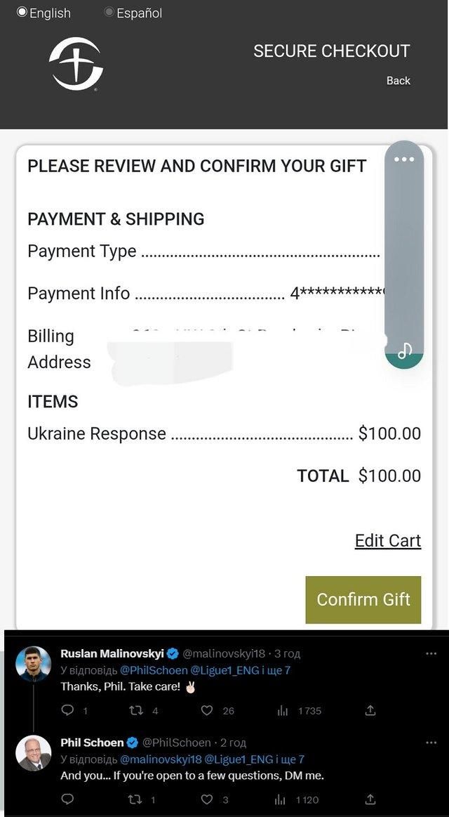 Наш земляк поделился с комментатором несколькими ссылками на благотворительные фонды, а Шоэн перечислил в один из них 100 долларов. Об этом американец отчитался в соцсетях.