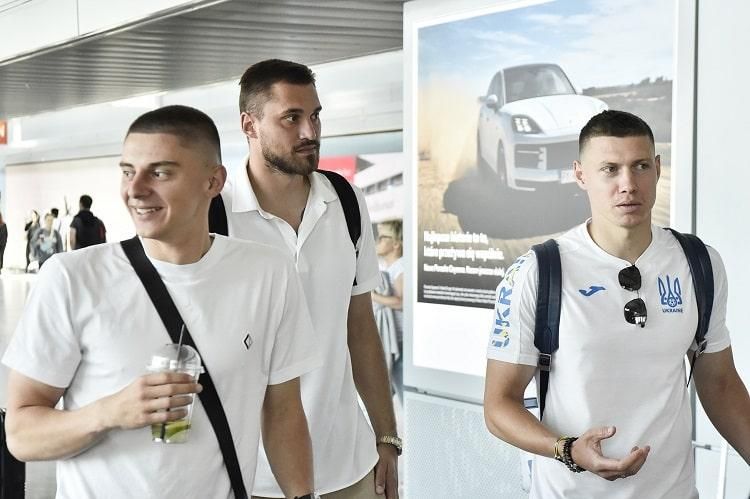 Из Киева в польский Холм выехали игроки украинских клубов, а также защитник Борнмута Илья Забарный. Далее национальная команда автобусом доехала до аэропорта Фредерика Шопена в Варшаве, где к ним присоединились два легионера - Владислав Кочергин из Ракува и Виталий Миколенко из Эвертона. Уже оттуда вылетела в первое место дислокации.