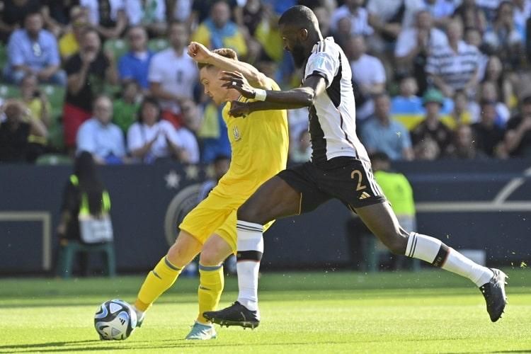Затем команды обменялись моментами: сначала Украине простил Рюдигер, а затем Зубков проиграл Траппу в ближней битве. На 83-й минуте немцы сократили отставание. Рюдигер передачей из своей части поля нашел Хаверца, тот протаранил Матвиенко и вернул интригу в это противостояние. А вскоре Хаверц протиснул Матвиенко и заработал пенальти. Антигерой – Соболь, сфоливший на форварде. Приговор реализовал Киммих.